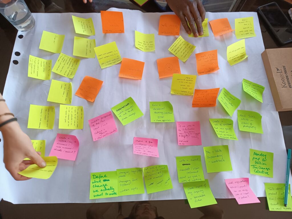 Over many years we did social actions with the migrant community working in the greenhouses in Almeria. We organised trips to the beach for families. And shared meals for women who wanted to campaign about their workers rights. Friends of La Bolina donated second hand clothes and bikes. This led to sustained embodied research on micro/macro rupture in sites of systemic harm.